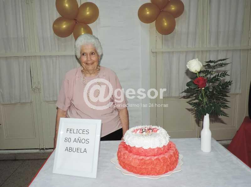 Un especial acontecimiento familiar se vivió este sábado en la sede de AEBU, en Calle Giménez. En ese céntrico local de Mercedes, la Señora Teresa Verde de Correa -madre de uno de nuestros compañeros de tareas en @gesor, Juan Francisco Correa-, fue homenajeada por sus familiares, con motivo de estar celebrando sus 80 años de edad. La ocasión fue propicia para que una vez más la abuela “Tere” (como le llaman cariñosamente sus nietos), recibiera múltiples demostraciones de afecto y gratitud por ser siempre el gran baluarte de su familia.