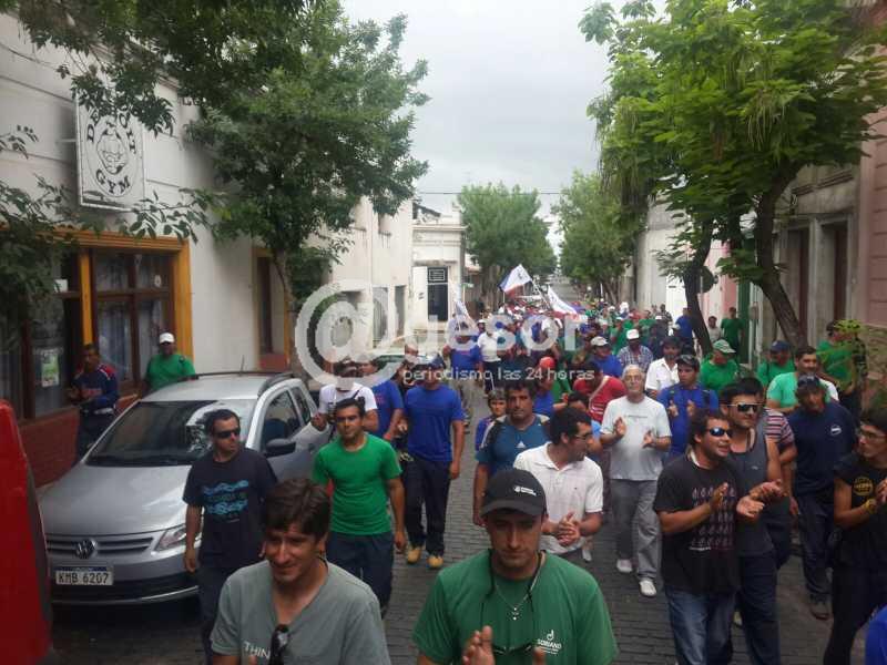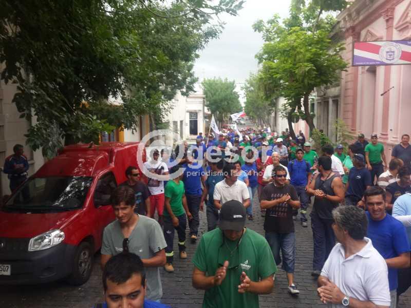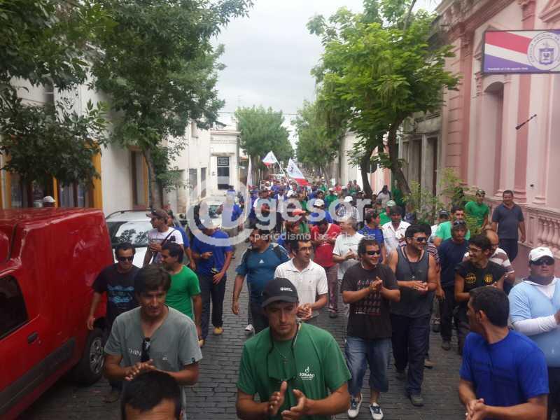 A las 9.10 horas y tras recorrer varias calles de Mercedes los trabajadores llegaron al Palacio Municipal, algunos ingresaron reclamando la presencia del Intendente Agustín Bascou para hablar con él, habiéndose señalado por parte de integrante de la directiva sindical que no está prevista la toma del edificio.