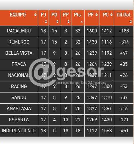Al comenzar este lunes la 18ª fecha del Torneo “Competencia” de la Liga Regional de Básquetbol de Soriano, Trofeo “90 años del Club Remeros Mercedes” (última etapa de la Segunda Rueda), Pacaembú le ganó con absoluta comodidad a Independiente, 103-67.