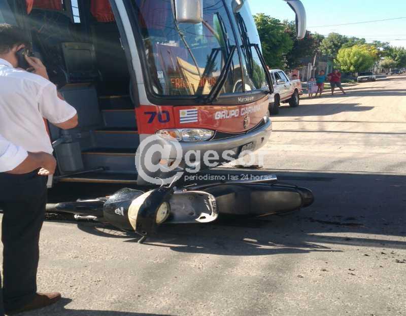 El hecho se dio en horas de la tarde este viernes, en la intersección de las calles Garibaldi e Ituzaingó. Tuvo como protagonistas a un ómnibus de empresa CUT y una moto, tal como lo muestra la fotografía que nos hiciera llegar lector de @gesor a través de nuestro número de whatsapp 092 88 93 29.