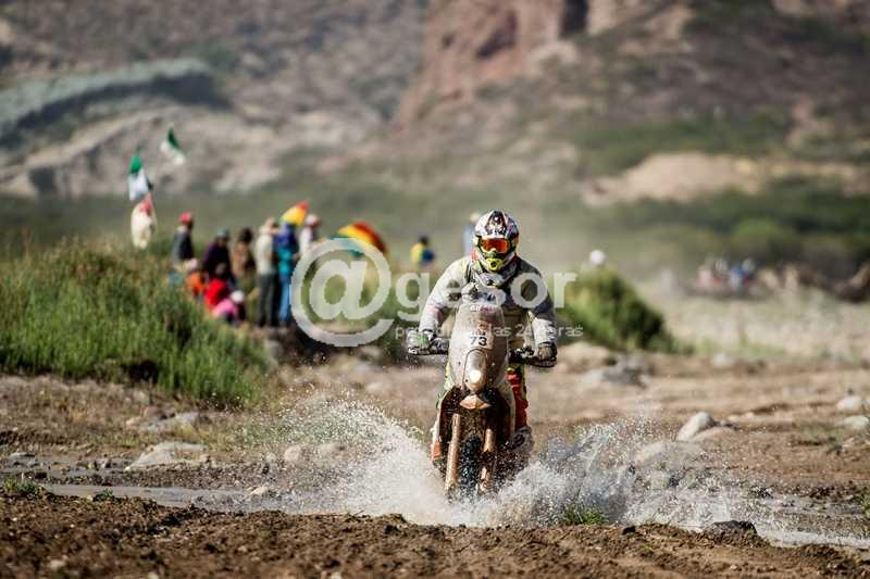 Luego nos contaba cómo había sido la etapa de hoy “Hoy tuvimos una etapa rápida, con mucha montaña. Para variar ha sido nuevamente una etapa en altura. Se debió de suspender los últimos 100 kms del Especial debido a la crecida de un río ya que se desató una fuerte tormenta que hizo que subieran rápidamente las aguas. La organización decidió acortar luego que pasaron 15 motos pero la siguiente se lo llevó la correntada y a otros, un par de pilotos, se le “ahogara” sus motos. Yo hoy nuevamente estuve todo el día con mucho dolor de cabeza, por este motivo imprimí un ritmo seguro ya que no quiero arriesgar porque he visto mucha gente lastimada porque muchos pensaron que había que salir rápido y se olvidaron que el Dakar es duro tanto por los caminos como por el desgaste enorme del físico. Por eso muchos pierden la concentración y ahí viene la macana, el error que, en algunos casos no pasa nada, pero en otros tiene consecuencias graves. Por este motivo decidí no arriesgarme más de lo normal”.