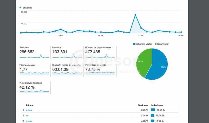 De acuerdo a estos informes, en febrero, @gesor recibió 266.662 visitas, habiéndose registrado 472.435 páginas vistas, con el ingreso de 42.12% de nuevos usuarios, lo que habla de la renovación e incremento de la masa de lectores.