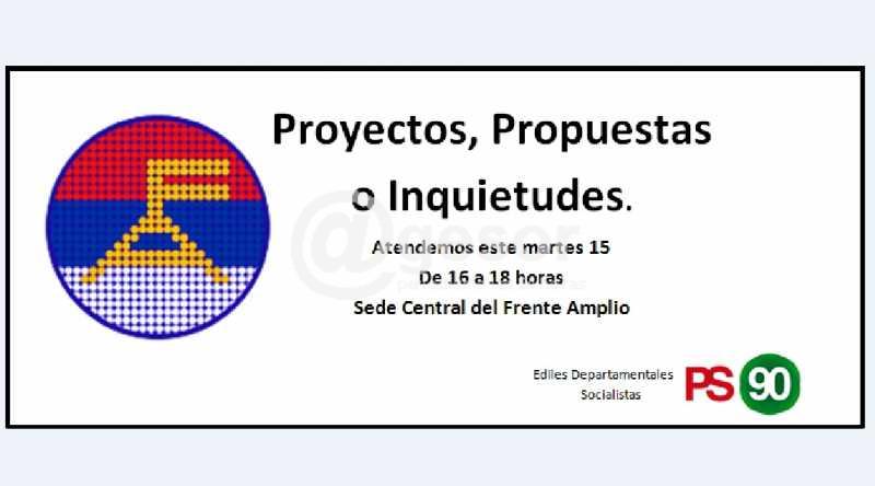 Se realiza la invitación: Este martes 15, de 16.00 a 18.00 horas en la sede Central del Frente Amplio, los ediles socialistas estarán atendiendo al público en general, recibiendo propuestas, proyectos o inquietudes.