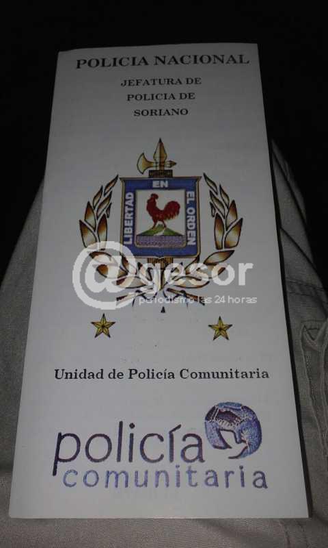 Personal de Policía Comunitaria de la Jefatura de Policía de Soriano, está distribuyendo en Mercedes, folletería con la finalidad de concientizar a la población sobre la "No violancia en el deporte, en la calle, en el hogar".
