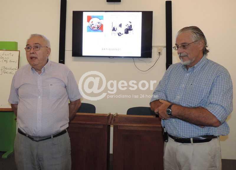 El público de Mercedes pudo disfrutar este lunes de una interesante visión reflexiva sobre Artigas, ofrecida por dos docentes oriundos de la ciudad, actualmente radicados en otros puntos del país. Alfredo Sáez Santos, profesor de historia, y Luis Ferrer Labriola, artista plástico, desarrollaron su presentación en la sala principal de la Biblioteca Eusebio Giménez, desbordada de público.