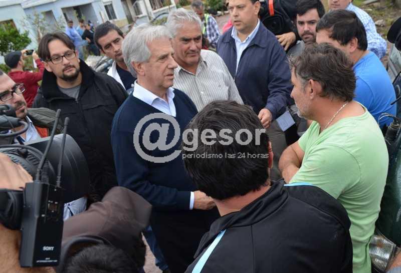 (por Martín Corujo, Aldo Difilippo, Daniel Estrada, Enrique Lecaille). El Presidente de la República, Dr. Tabaré Vázquez, acompañado por el Intendente de Soriano, Agustín Bascou Gil, recorrió la zona más afectada por el tornado, el barrio Altos de Dolores, dialogando con los vecinos.