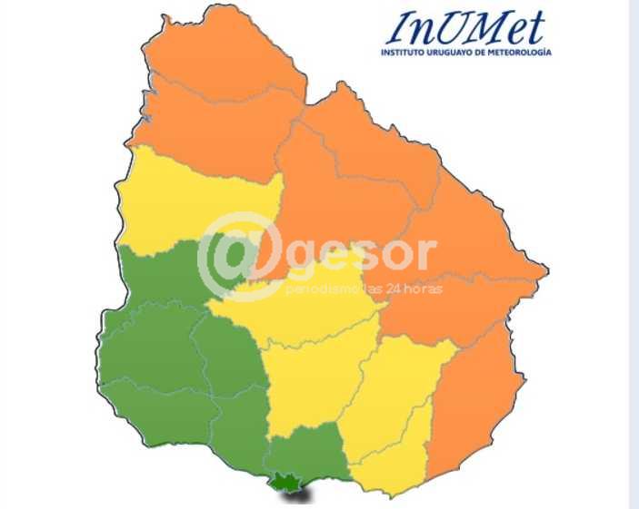 Al mediodía cesó la alerta roja que había anunciado INUMET, varios departamentos quedaron en advertencia de nivel naranja, otros en amarillo y algunos en verde, como el caso de Soriano.