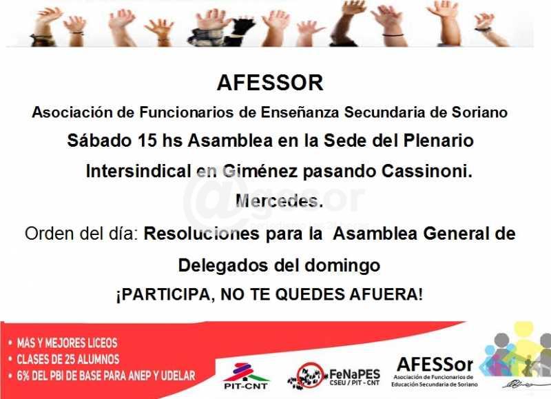 Sábado 15 hs Asamblea en la Sede del Plenario Intersindical en Giménez pasando Cassinoni. Mercedes.