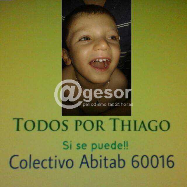 Thiago Torres Pereira CI 6.022.048-4, padece parálisis cerebral producto de un accidente en su infancia, que deberá enfrentar un esperanzado tratamiento en el vecino país a través de implantes de células tronco adultas y autólogas mediante Medicina Regenerativa. En la clínica de La Plata el presupuesto para el tratamiento es de 6000 dólares. Este proceso con éxito le aportará a Thiago una mejor calidad de vida, con amplia posibilidad de sanar cada una de sus falencias.