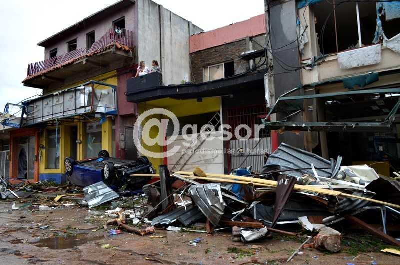 (Dolores, por Roberto Sari Torres) Un huracán de 300kilómetros a la hora en la pared rotatoria del viento “tornado” de quizá medio kilómetro de ancho, dejó un reguero de más de 3 kilómetros de destrucción masiva al cruzar Dolores de largo a largo y como consecuencia de la interacción del imponente vienco conel suelo barrido por su espiral. Dejó en todos un sentido desolado de falta de ejecutividad en su protección ante la inclemencia de la lluvia y el frío que siguió al huracán. Hay también en todos un innominado temor por el futuro, de tristeza al ver sus casas destruidas y las ruinas de la querencia querida: casi 155 manzanas derrumbadas y tal vez 1900 viviendas afectadas; casi 300 en el sueño no quedando más que cascotes; otras 800 muy dañadas (en más o menos, son cifras aproximadas).
