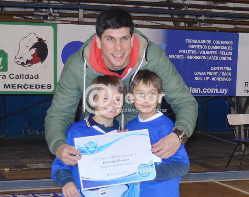 Durante la inauguración del piso flotante del Estadio “Alberto Della Santa” del Club Atlético Praga, previo al partido de juveniles Praga-Sandú Chico, el ex jugador praguense, Demian Álvarez -quien hace varios años actúa en el baloncesto de Montevideo (con presencia incluso a nivel de selecciones uruguayas)-, fue objeto de una distinción muy especial. Álvarez recibió una camiseta de Praga y un diploma que oficializa su designación como padrino del grupo de formativas de los celestes, como @gesor informa por separado.