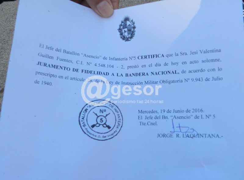 Tal como informáramos, se llevó a cabo en la mañana de este domingo 19 de junio, el acto de Juramento de Fidelidad a la Bandera que se desarrolló en la plaza de Armas del cuartel sede del Batallón "Asencio" de Infantería N° 5, con la presencia de los efectivos militares dando marco a la celebración de la que participaron unas veinte personas, la mayoría de ellos en virtud de precisar la constancia para actividades laborales y en otros casos de gestiones.