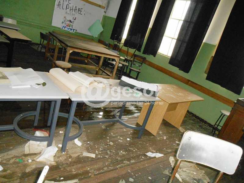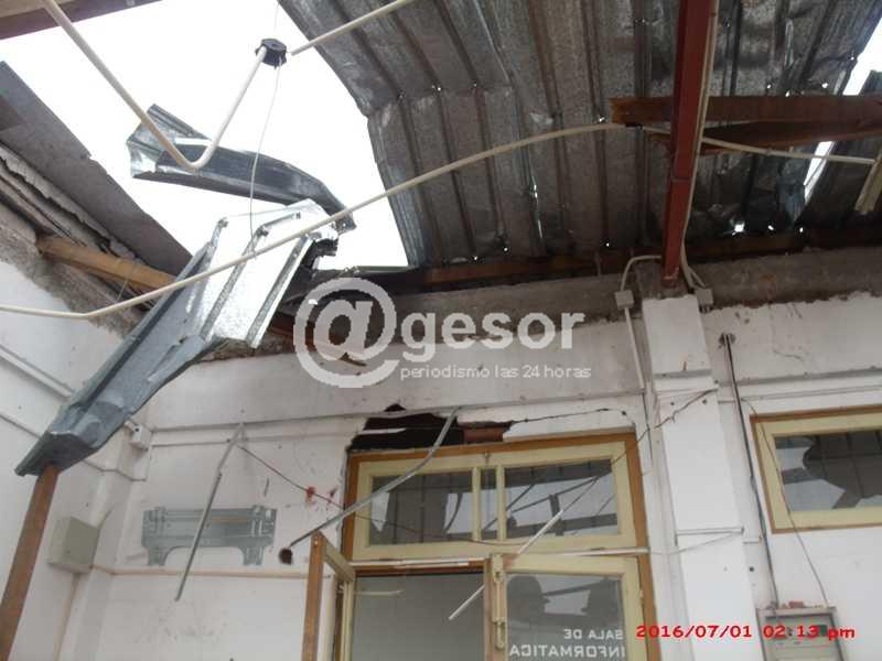 La voladura del techo de la tercera planta está afectando a las demás instalaciones (primera y segunda planta) por humedades y continuas filtraciones de agua. Los equipos de la sala de informática se perdieron, las bibliotecas, vitrinas y todo el mobiliario está pudriéndose, entre otras tantas pérdidas.