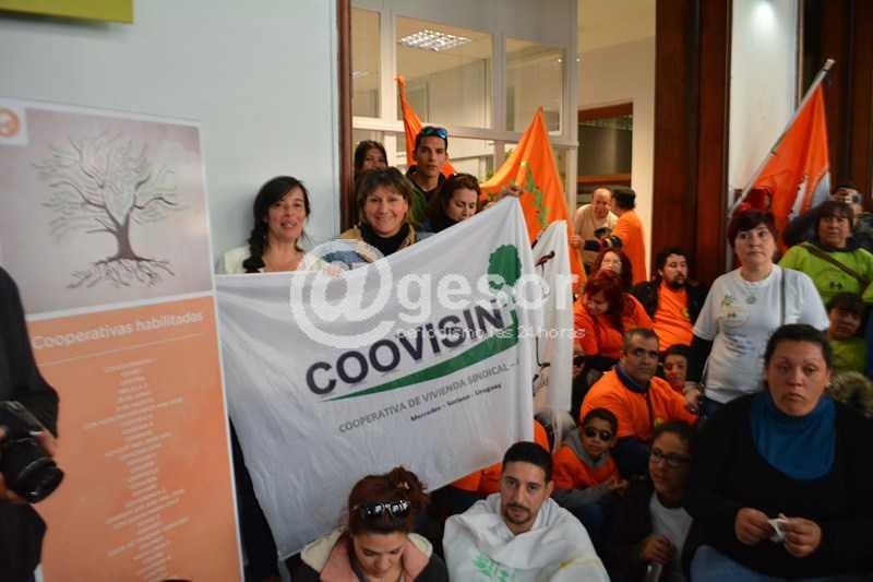 De las seis cooperativas de COVISIN quedábamos dos, la "A" y la "E", hoy salimos las dos, estamos todas con el préstamo adjudicado, ahora tenemos que negociar un punto del convenio que tenemos con OSE y la Intendencia, la comuna terminar las calles y la OSE que empiece el saneamiento y la red de agua potable, todas juntas vamos a salir adelante. Nosotros somos 40 familias, veníamos con toda la fe, es mucha emoción hay que estar acá".