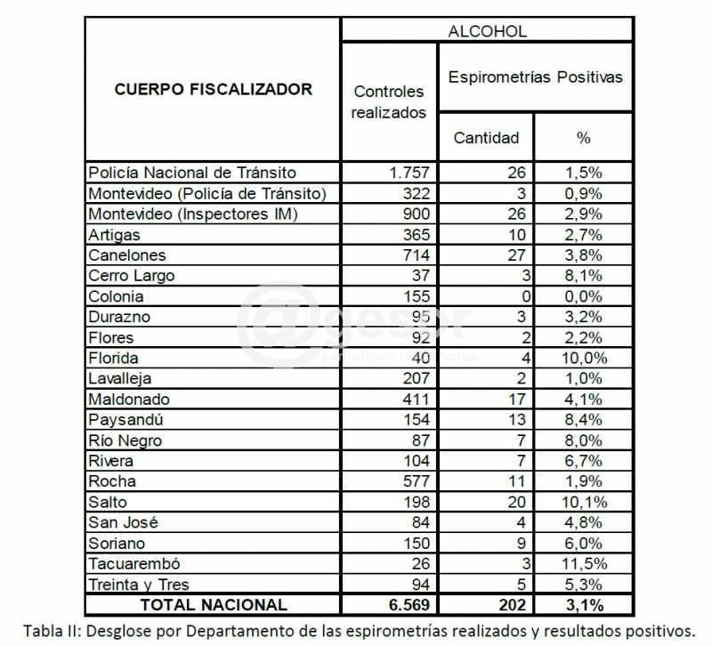 En Soriano, de acuerdo a estos datos, las espirometrías positivas representan el 9% de los conductores fiscalizados, en tanto el promedio nacional fue del 3,1%.
