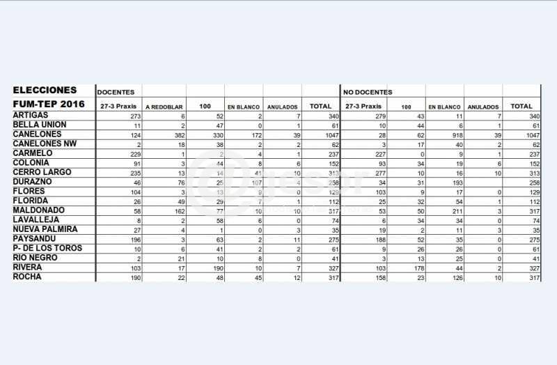 En el caso del orden no docente obtuvimos los dos cargos disputados, lo que supone que la lista 27-3 Praxis encabezada por quién habla duplicó en votos a la lista 100, encabezada en este caso por Ivonne Casanyes. O sea otro gran respaldo a la lista.