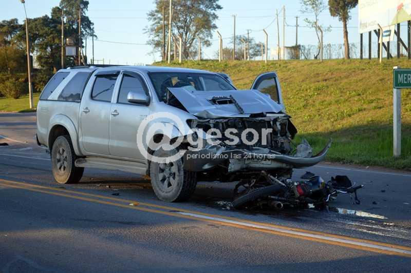 Un motociclista resultó con graves lesiones al registrarse un violento choque en los accesos a la ciudad de Mercedes, a la altura de la Ruta Nacional Nº 2, Km 277,300.