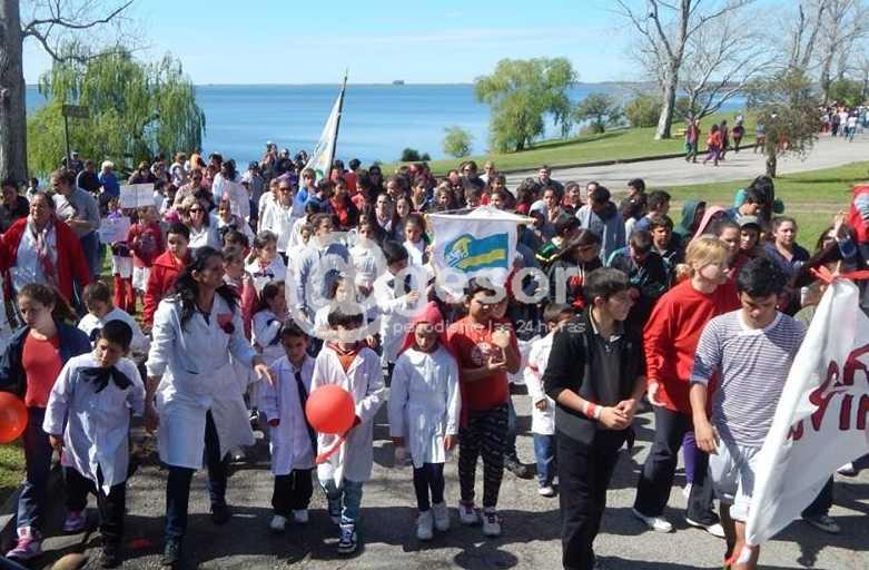 10.00 - Grupos de CAIF hicieron caminata alrededor de la plaza de Deportes con corazones.