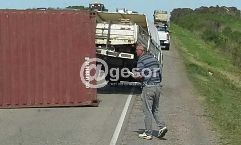 Ocurrió en el kilómetro 343, entre Dolores y Mercedes, cuando un camión tiraba una zorra que llevaba un contenedor.