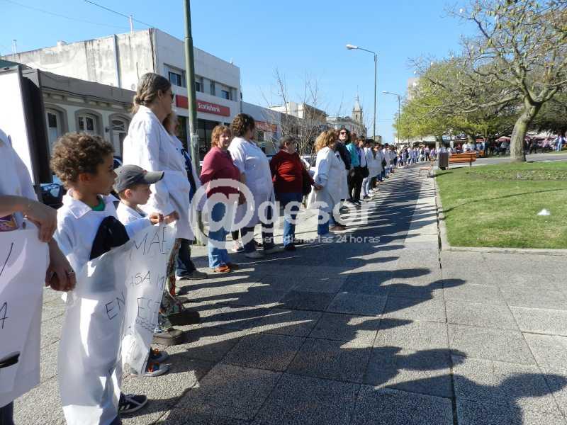 Cabe señalar que ante la consulta de padres, en Soriano la medida de acompañar y solidarizarse con sus pares de Montevideo, es la de lucir una cinta celeste, pero no hay paro de actividades.