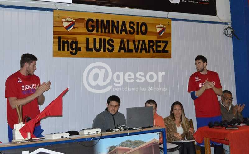 Previo al partido que este sábado marcó el debut de Sandú Chico y Praga en el Torneo Competencia de la Liga Regional de Básquetbol de Soriano, cumplido en el gimnasio del primero, se realizó la anunciada ceremonia por la cual se reinauguró ese escenario y se le designó “Ingeniero Luis Álvarez”, en presencia del homenajeado. Se proyectó un vídeo, repasando en imágenes la construcción del gimnasio y las mejoras que se han introducido últimamente, como la instalación de piso flotante, tras lo cual hizo uso de la palabra el dirigente Oscar Méndez. De inmediato dos de los jugadores del actual plantel de baloncesto de Sandú Chico, Huamani Millán y Lucas Lepiani, descubrieron el rótulo con el nombre de la tribuna, reconociéndose con esa designación a un desaparecido  luchador del club, Luis “Vasco” Soto. Acto seguido se dirigió al público un nieto del homenajeado, Matías Soto, quien fuera campeón con Sandú, y que está radicado en Montevideo. A continuación otros dos jugadores del plantel tricolor, Gianno Belase y y el fraybentino Pablo García, descubrieron el rótulo con el nombre del gimnasio. El Ingeniero Luis Álvarez ha sido, entre otras funciones desempeñadas, presidente del club (1990-2008). Por último el propio Ingeniero Luis Álvarez cortó la cinta simbólica que dejaba reinaugurado el escenario que hoy lleva su nombre, siendo acompañado por el actual presidente, Diego Caffera. Para la familia de Sandú Chico fue una noche que quedará en el mejor recuerdo de la institución.
