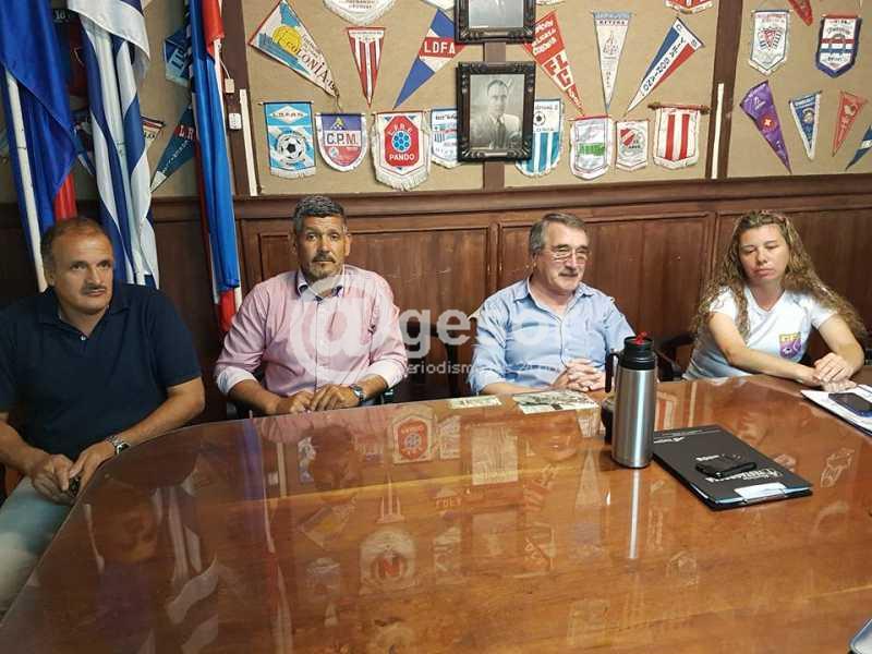 En la noche de este martes, en la sede de Ituzaingó 173, las autoridades de la Liga Departamental de Fútbol de Soriano encabezadas por el Presidente Heber Scirgalea, recibieron a autoridades de la AIAF (Asociación Intergremial de Arbitros de Fútbol), gremial que nuclea a los árbitros del fútbol del interior. El Presidente de ésta, maragato Walter Brajús, estuvo acompañado también por dirigentes de la gremial de árbitros de Mercedes, en la fotografía se aprecia a Manuel Santos y Ximena Vique, junto a Brajús y Scirgalea.