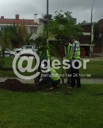 Personal de la sección Parques y Jardines de la Intendencia de Soriano procede a realizar tareas de reposición de arboles y arbustos en varias plazoletas de la rambla costanera de Mercedes.