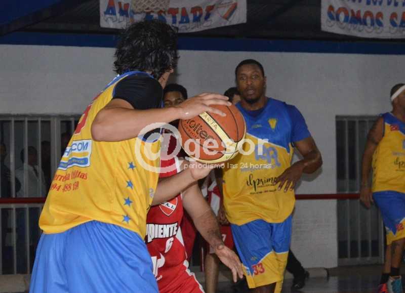 Al culminar el primer tiempo, ya ganaba el equipo rojo de Calle Sánchez, por un doble de diferencia, 36-34.