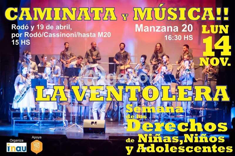 A través de Centros MEC Soriano en la Manzana 20, a las 16:30 hs aproximadamente, se integrará a la caminata y brindará su espectáculo el grupo uruguayo La Ventolera, liderada por el saxofonista, compositor y arreglador Leo Méndez conformada por 20 músicos vientistas y percusionistas.