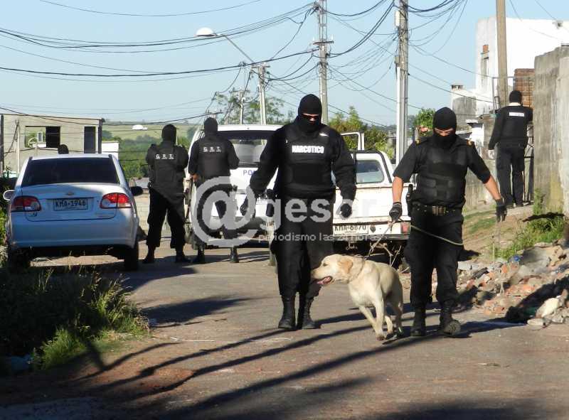 Ya antes de las 7.00 horas de este jueves cuando en el barrio Cerro de Mercedes inmediaciones de la plaza "Eugenio Aguilar", varios móviles policiales llegaron con decenas de efectivos para efectuar allanamientos simultáneos en varias casas de conocida familia de esa zona. Personal de la Brigada Antidrogas, del Grupo de Respuesta Táctica (GRT), seccionales policiales, desembarcó en una zona donde se tenía información sobre la posible venta de estupefacientes. El personal de la Brigada incluyó también la presencia de perros adiestrados en la búsqueda de drogas.