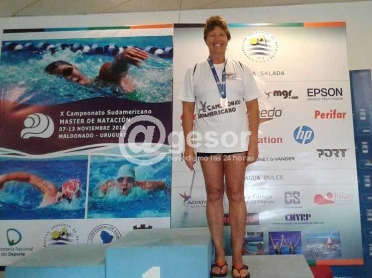 Alicia Santos conquistó medalla de bronce. La nadadora mercedaria alcanzó el podio al resultar tercera en 100 metros espalda.