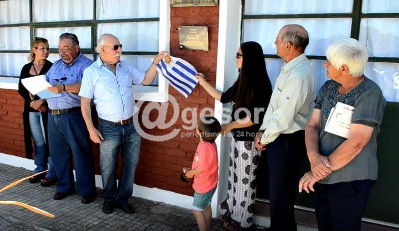 Los ex alumnos del centro escolar al finalizar el acto descubrieron una placa en el frente del edificio, recordando el Centenario de la Escuela N° 45 "Evaristo Ciganda".