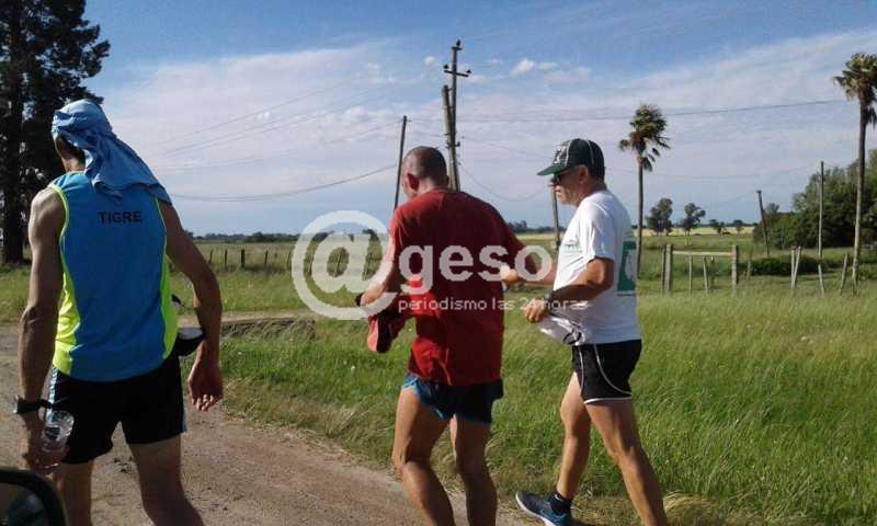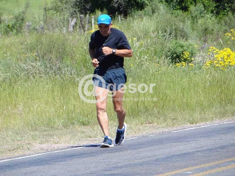 En el tercer y último día de su desafío (unir corriendo Montevideo y Mercedes, Rodney Cuestas se apresta a iniciar en Palmitas el tramo final de su hazaña deportiva, bajo un fuerte sol.