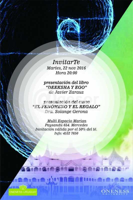 El lanzamiento de “Deeksha y Ego” en el Multi Espacio Marian de Mercedes , se realizará en el marco de un Té durante el cual también se hará la presentación del curso “El Fenómeno y el Regalo”, con la Doctora Solange Gerona.