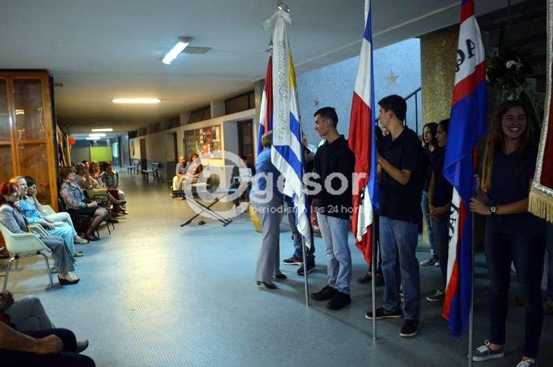 El acto incluyó el cambio de abanderados y la actuación del coro liceal.