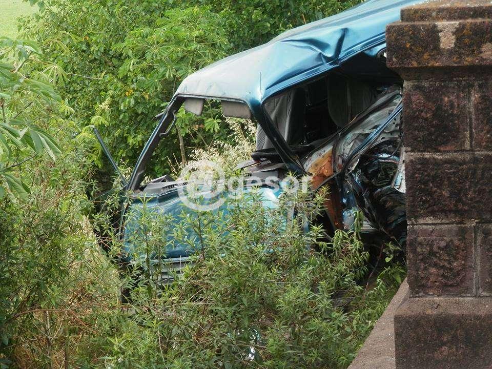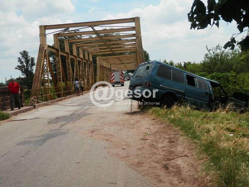 Un grave siniestro ocurrió en la tarde del domingo cuando una camioneta impactó contra la cabecera norte del puente San Salvador, en los ingresos a Dolores, y estuvo a punto de caer por una barranca.