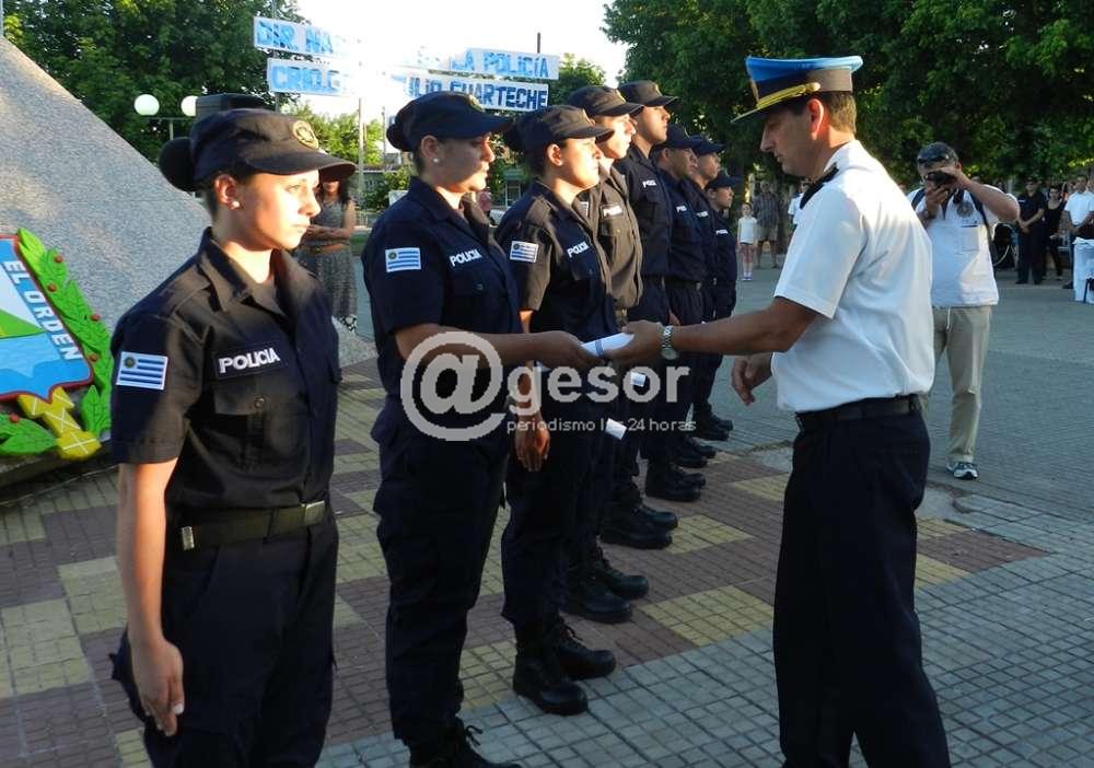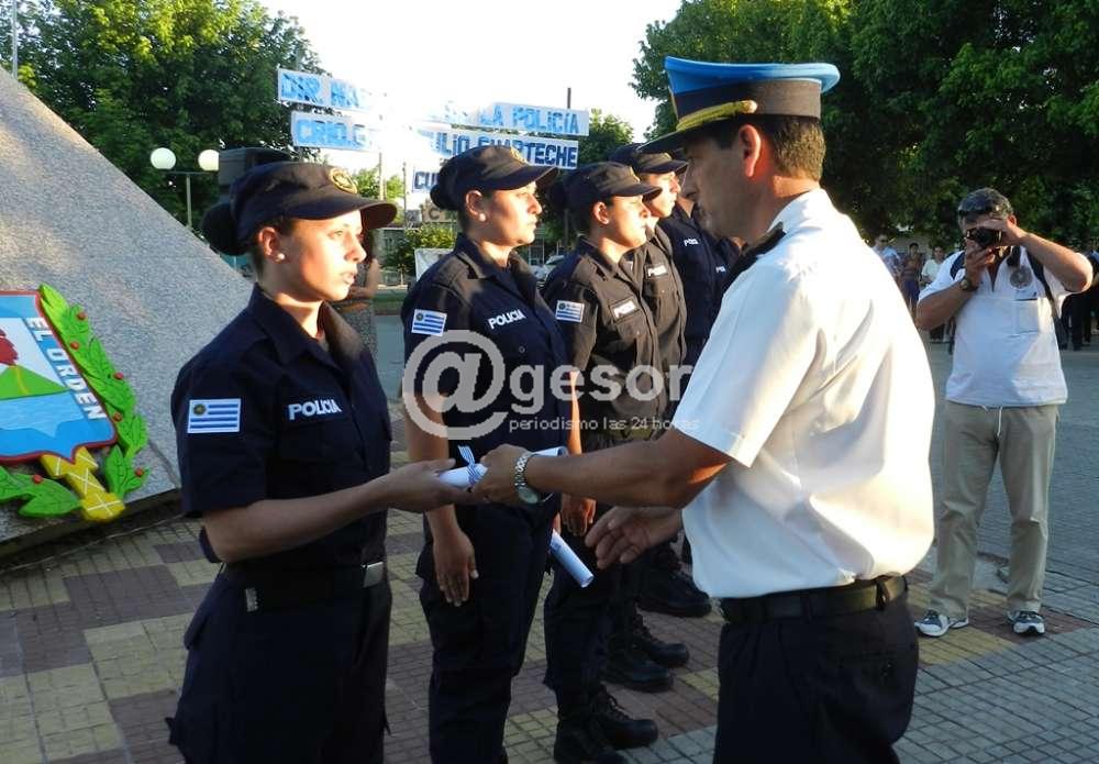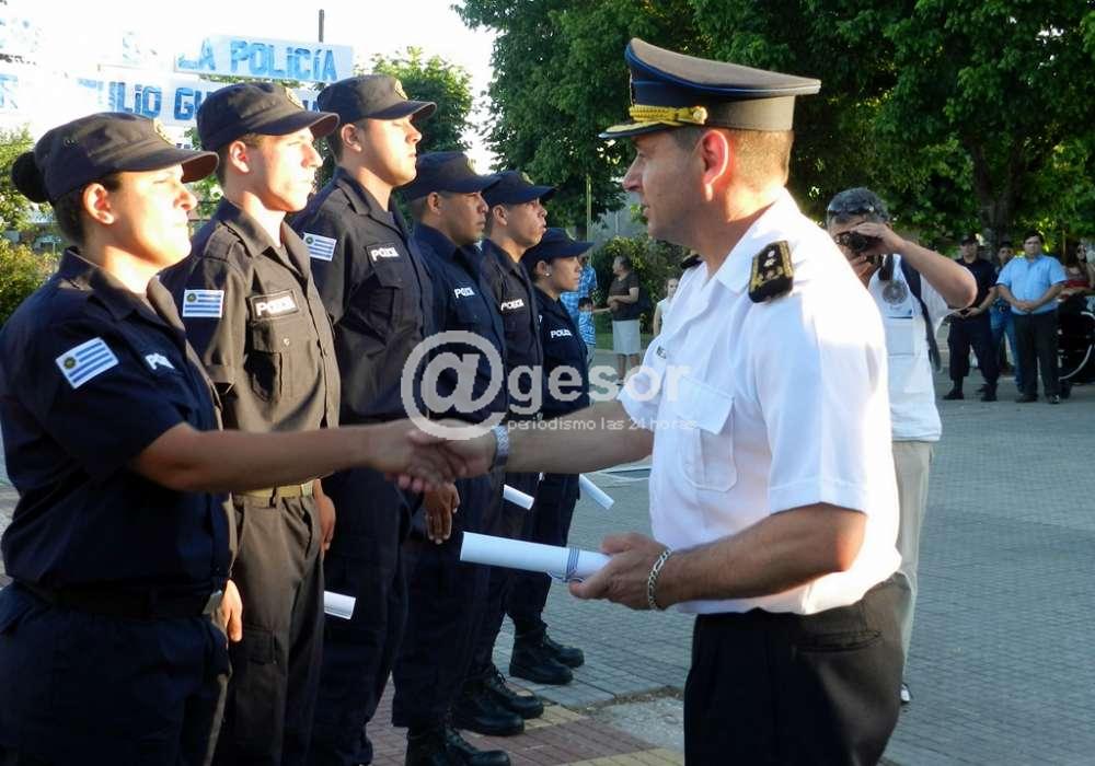 Durante el discurso de egreso de los ocho nuevos policías que se realizó este jueves en la plaza Lavalleja de Mercedes, el Director de la Escuela Departamental de Policía de la Jefatura de Soriano, Crio. May. José Fernández Lares destacó la importancia para la fuerza la incorporación de "savia nueva", paralelamente hizo referencia a los siete de meses instrucción y en ellos "el apoyo de las familias" y "la responsabilidad y compromiso de los instructores", a quienes agradeció.