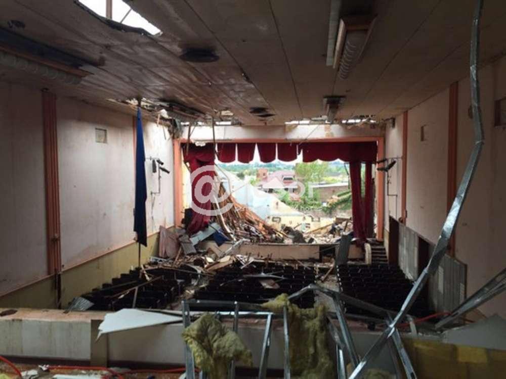 En abril inesperadamente un tornado ?asoló Dolores destruyendo aproximadamente un tercio de l?a ciudad, entre? los edificios dañados? se encuentra el emblemático Centro Recreativo Paz y Unión, que hoy tiene al descubierto, los 600 metros aproximados que conformaban el área de teatro y cine.