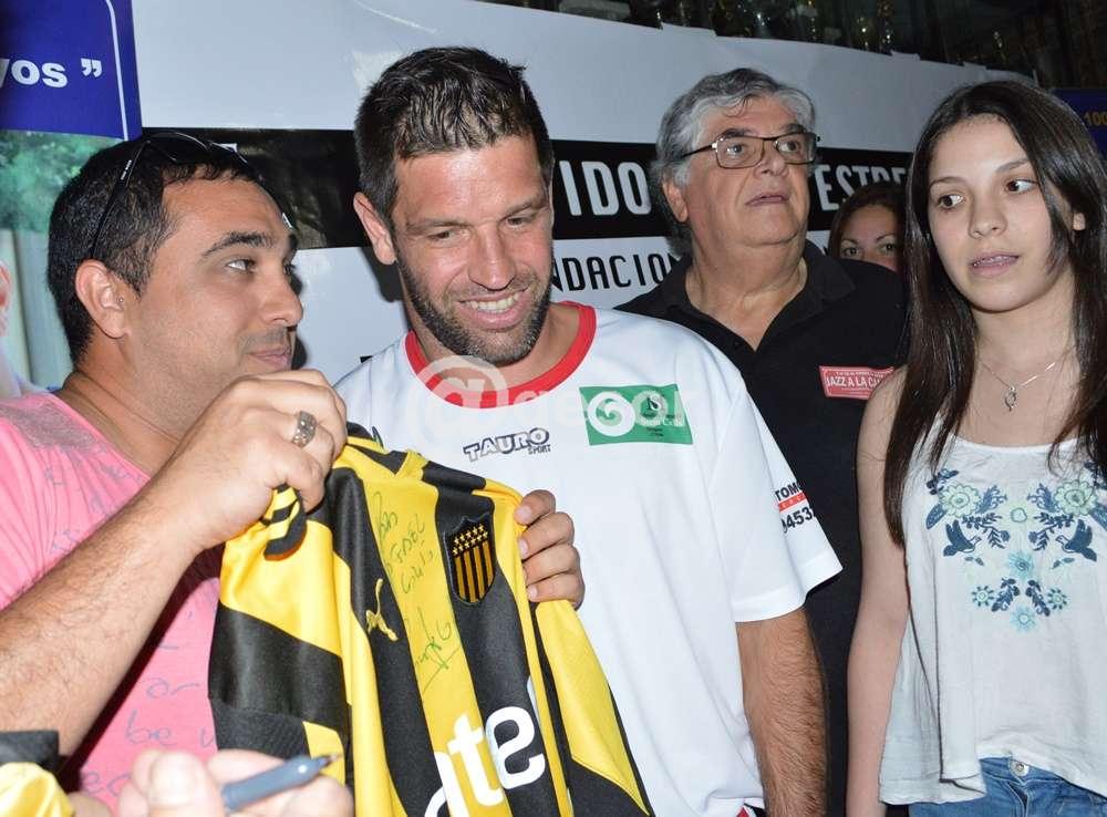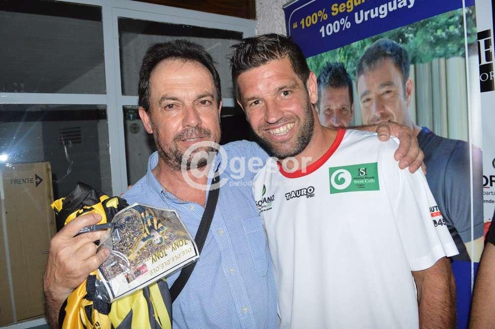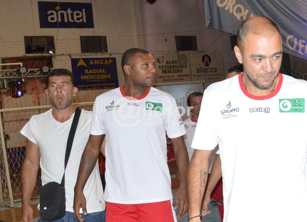 Antonio Pacheco, Álvaro Recoba y Marcelo Zalayeta, entre otros jugadores de fútbol que ya se retiraron de la actividad oficial, estuvieron participando en la noche de este sábado de un partido de fútbol sala en el Estadio “Alberto Della Santa” del Club Atlético Praga de Mercedes, enfrentando al conjunto de Los Abstemios, a beneficio de la Fundación Sebastián Miranda, como se había difundido oportunamente en @gesor.