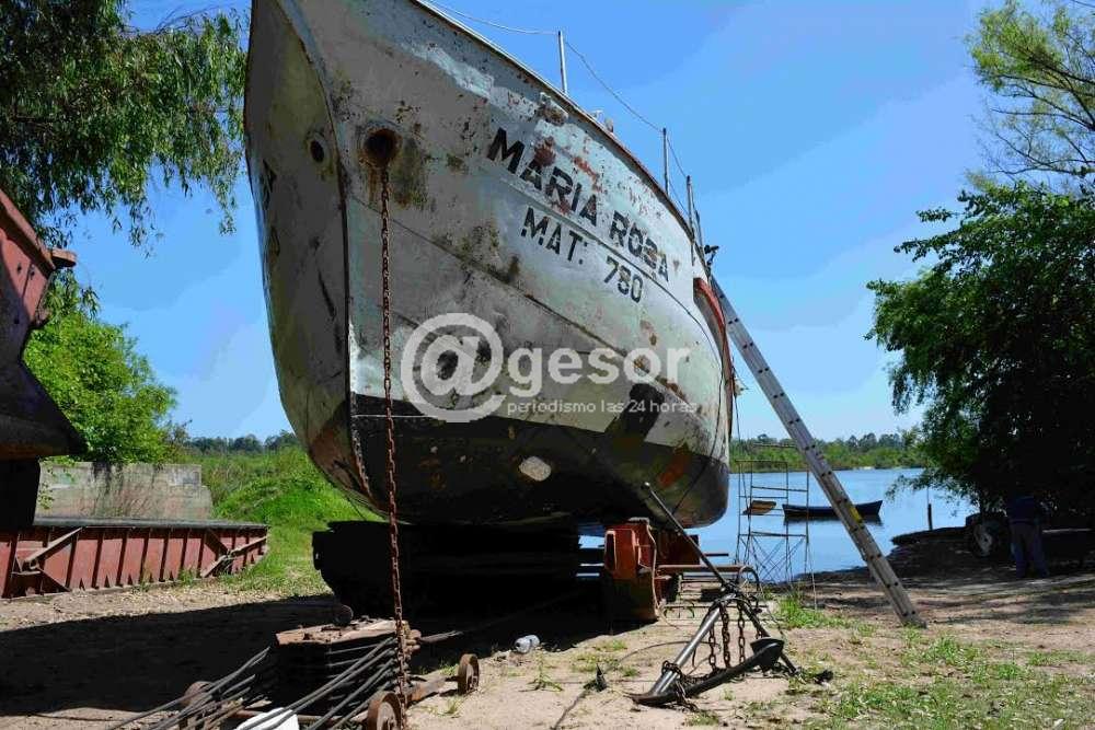 El Departamento de Talleres Municipales trabaja en la balandra María Rosa, haciendo mantenimiento general de la embarcación de la Intendencia de Soriano que se usa para la extracción de arena en el río Negro.