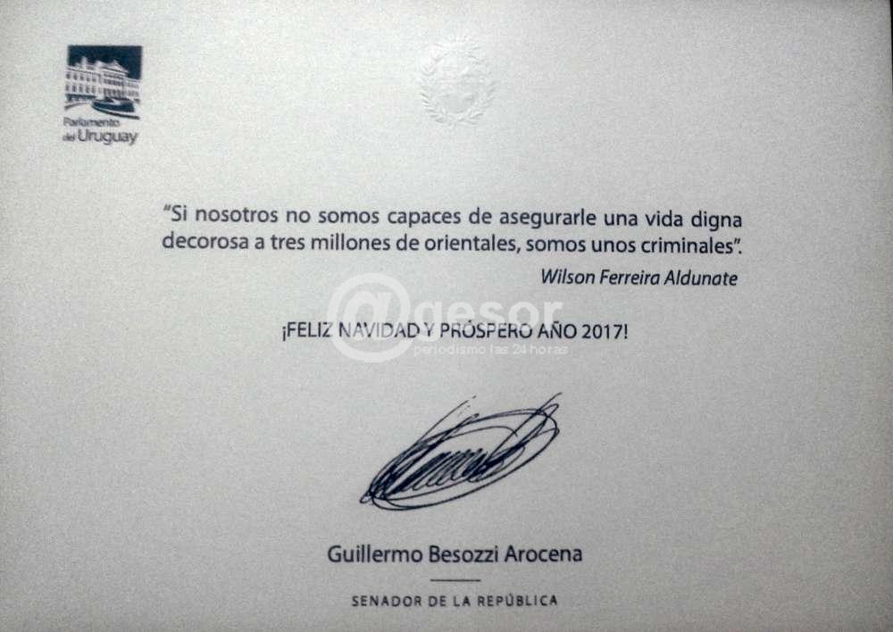 "Si nosotros no somos capaces de asegurarle una vida digna, decorosa, a tres millones de orientales, somos unos criminales". Wilson Ferreira Aldunate. ¡Feliz Navidad y Próspero Año 2017! Guillermo Besozzi Arocena. Senador de la República.