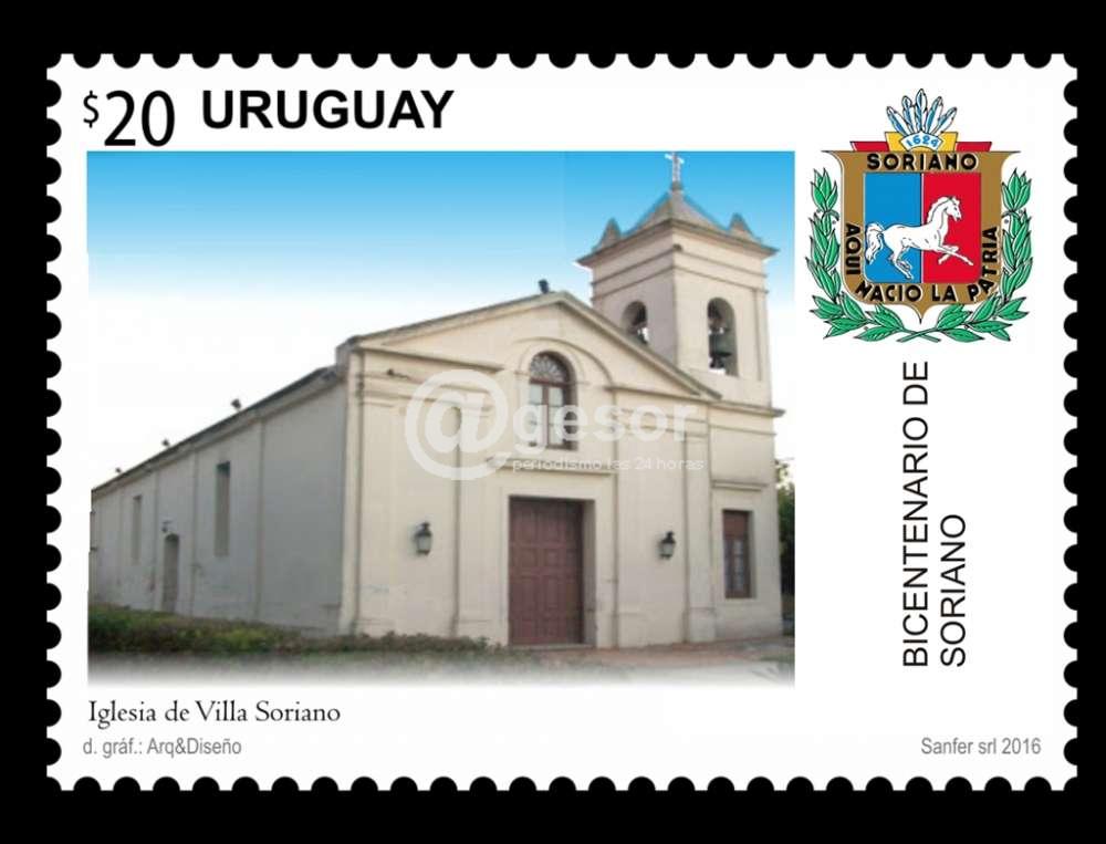 Sello conmemorativo del bicentenario de Soriano La Iglesia de Villa Soriano fue imagen elegida para una nueva edición de sellos del Correo en homenaje al bincentenario del departamento, conmemorado en el 2016. La Administración Na