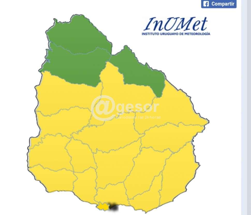 Inumet emitió un llamado de atención meteorológico de color amarillo, que rige para los departamentos de Colonia, Río Negro, Soriano, Flores, San José , Tacuarembó, Florida, Paysandú, Durazno, Montevideo, Canelones, Maldonado, Lavalleja, Treinta y Tres, Cerro Largo y Rocha.