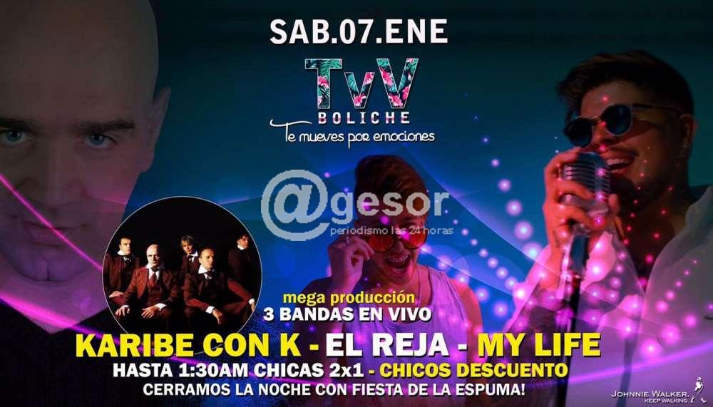El boliche Te vi Venir de Mercedes (TvV), ubicado en la zona costanera, junto al Puente Líber Seregni, viene trabajando en una mega producción, anunciando para el próximo sábado 7 de enero la presentación de tres bandas en vivo, entre ellas la legandaria Karibe con K.