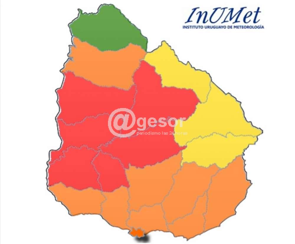 Otros nueve en alerta naranja, tres en amarillo y Artigas en verde