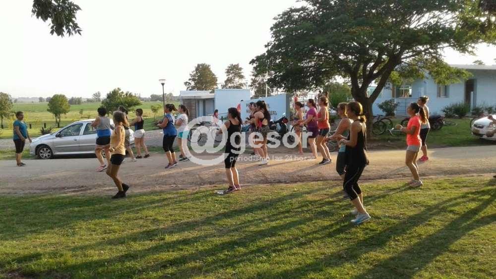 Gimnasia aeróbica en : horario matutino en Manzana 19, barrio estadio Koster y Túnel, barrio Oeste, barrio 33 Orientales