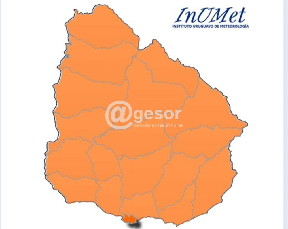 A la 0.00 hora de este miércoles, INUMET actualizó la advertencia meteorológica, pasando todo el país a nivel de riesgo naranja, y la nueva actualización será a las 6.00 horas o ante eventuales cambios. La probabilidad de ocurrencia es de 75%, previéndose que masa de aire cálida, húmeda e inestable interactúa con frente frío de lento desplazamiento, generando tormentas, algunas puntualmente fuertes, acompañadas de los siguientes fenómenos meteorológicos: actividad eléctrica, ocasionales granizadas, precipitaciones puntualmente copiosas (50 - 80 mm en cortos períodos de tiempo), rachas de viento muy fuertes (75 - 120 km/h), ocasionalmente superiores.