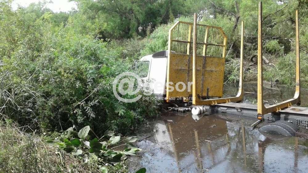 Un camión perteneciente a la empresa Gafesur, Mat. JTP 1727 con zorra KTP 1725 dedicada al transporte de madera que circulaba vacío, despistó, el pesado semi remolque maderero, por causas que se investigan, se desbarrancó en un puente a la altura del kilómetro 43.800 de la ruta 55 y cayó al arroyo conocido como “Del Medio”.