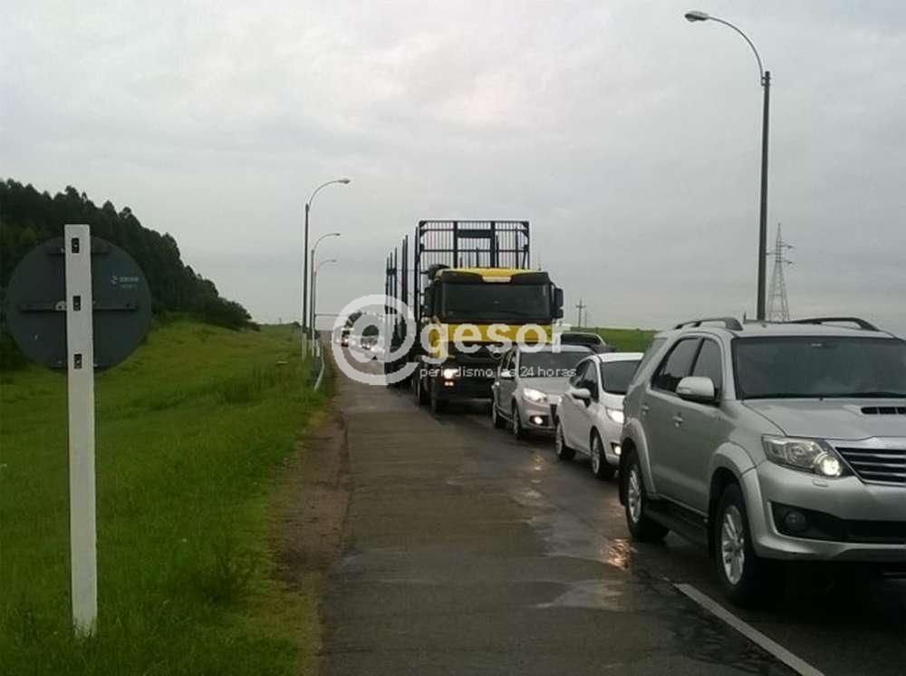 Larga fial de vehículos se aprecian durante la tarde de este domingo en peaje entre Mercedes y Fray Bentos