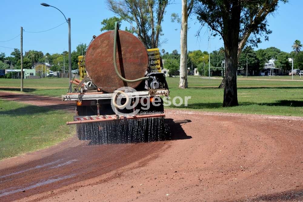 Maquinaria y personal del Dpto. de Obras realiza estas tareas de reacondicionamiento en las calles internas del parque Guernika.